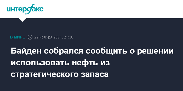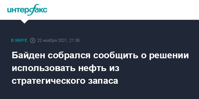 В начале ноября Байдена, как сообщалось, спрашивали на пресс-конференции, собирается ли он задействовать нефть из стратегического запаса для решения проблемы высоких цен на энергоресурсы. Тогда президент США предпочел не отвечать.
