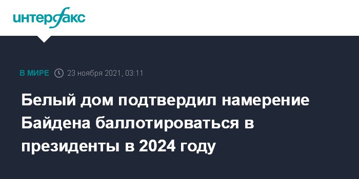 Москва. 23 ноября. INTERFAX.RU - Президент США Джо Байден намерен баллотироваться на второй срок в 2024 году, подтвердила пресс-секретарь Белого дома Джен Псаки.