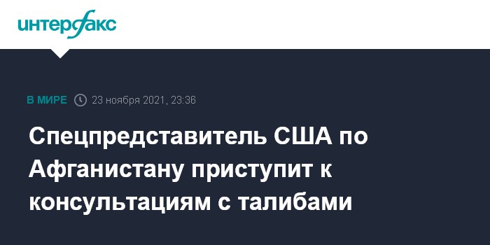 Москва. 23 ноября. INTERFAX.RU - Спецпредставитель США по Афганистану Томас Уэст на следующей неделе начнет раунд консультаций с представителями движения "Талибан" (запрещено в РФ), сообщил во вторник представитель Госдепа Нед Прайс.