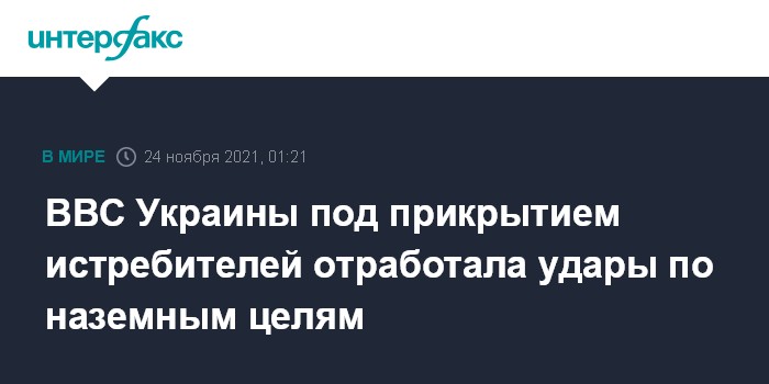 Москва. 24 ноября. INTERFAX.RU - Ударная и истребительная авиация Воздушных сил ВС Украины (ВСУ) во вторник вечером отработала нанесение воздушных ударов по противнику на полигонах "Широкий лан" и "Киево-Александровский", сообщила пресс-служба командования Воздушных сил ВСУ.