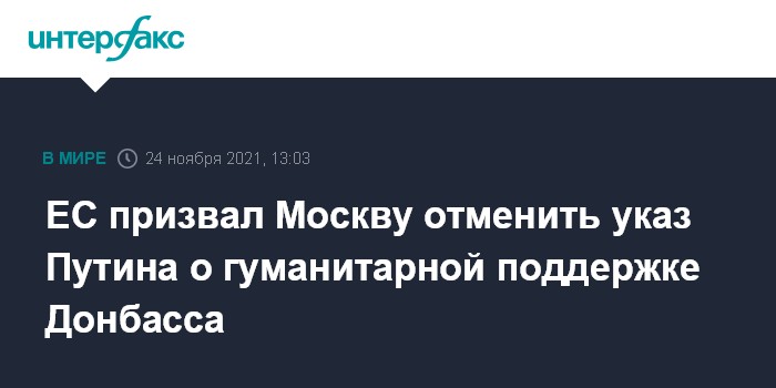 ЕС призвал Москву отменить указ Путина о гуманитарной поддержке Донбасса