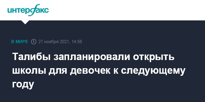 Москва. 27 ноября. INTERFAX.RU - Пришедший к власти в Афганистане "Талибан" (запрещенная в России террористическая организация) обещает открыть школы для девочек в 2022 году.