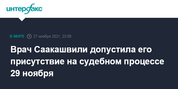 Москва. 27 ноября. INTERFAX.RU - Лечащий врач находящегося в заключении экс-президента Грузии Михаила Саакашвили Нино Гогоришвили заявляет, что состояние здоровья его пациента удовлетворительное и он готовится к судебному процессу.