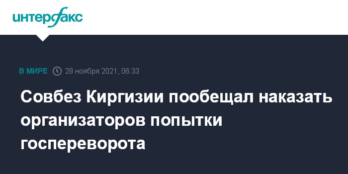 Москва. 28 ноября. INTERFAX.RU - Организаторы попытки насильственного захвата власти в Киргизии должны быть привлечены к ответственности, заявил в воскресенье секретарь Совета безопасности республики Марат Иманкулов.