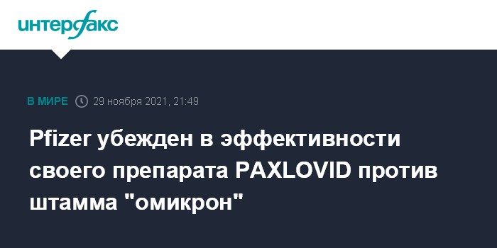 Pfizer убежден в эффективности своего препарата PAXLOVID против штамма "омикрон"