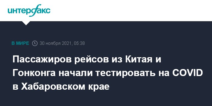 "Сейчас везде активно обсуждается штамм "омикрон", его возможность появления на территории РФ. Закрыть все границы практически невозможно. Понятно, что такая угроза существует. В пятницу на оперативном штабе под председательством Татьяны Алексеевной Голиковой Хабаровскому краю было дано поручение с полуночи воскресенья начать тестирование всех возможных наших рейсов по Китаю и Гонконгу. Эта работа уже выполняется. Все, кто появляется в крае по этим направлениям, проходят экспресс-тестирование", - отметил Никонов.