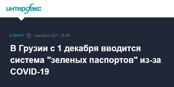 Москва. 1 декабря. INTERFAX.RU - В Грузии с 1 декабря в связи с коронавирусом начнет действовать система "зеленых паспортов", сообщает в среду Минздрав страны.