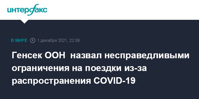 Москва. 1 декабря. INTERFAX.RU - Генеральный секретарь ООН Антониу Гуттериш называет введение новых ограничений в связи с распространением нового штамма коронавируса "омикрон" "несправедливым".