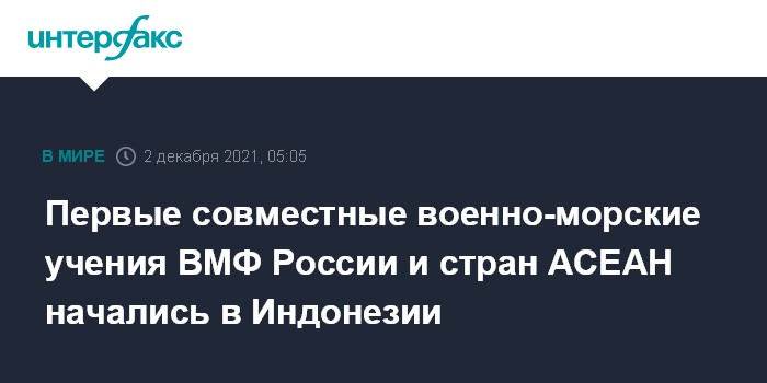 Москва. 2 декабря. INTERFAX.RU - В военно-морской базе в порту Белаван (Индонезия) прошла церемония открытия первых совместных военно-морских учений России и стран Ассоциации государств Юго-Восточной Азии (АСЕАН) ARNEX-2021, сообщил в четверг Тихоокеанский флот.