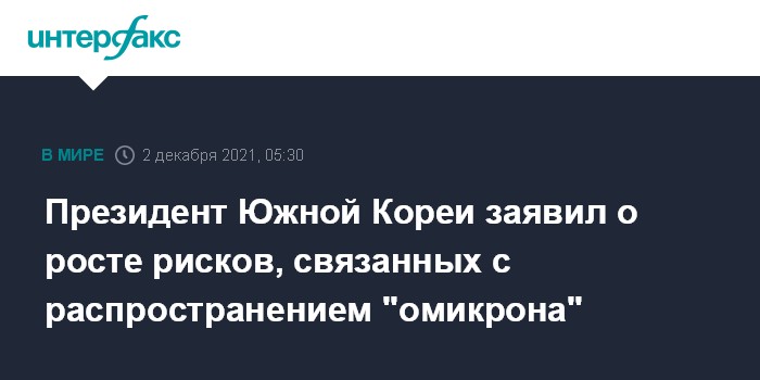 Президент Южной Кореи заявил о росте рисков, связанных с распространением "омикрона"