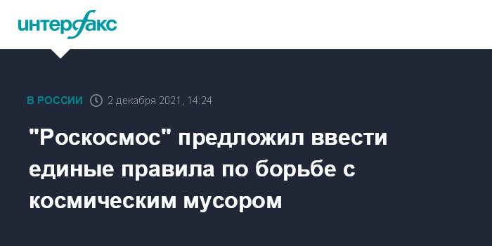 Москва. 2 декабря. INTERFAX.RU - Чтобы земные орбиты не засорялась космическим мусором, нужно выработать международные правила поведения в космосе, заявил на Всероссийском форуме космонавтики "КосмоСтарт-2021" исполнительный директор "Роскосмоса" по перспективным программам и науке Александр Блошенко.