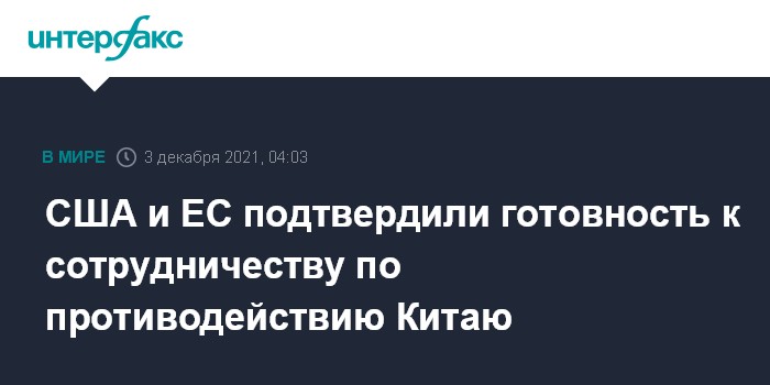 США и ЕС подтвердили готовность к сотрудничеству по противодействию Китаю