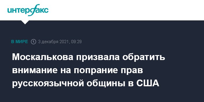 Москалькова призвала обратить внимание на попрание прав русскоязычной общины в США