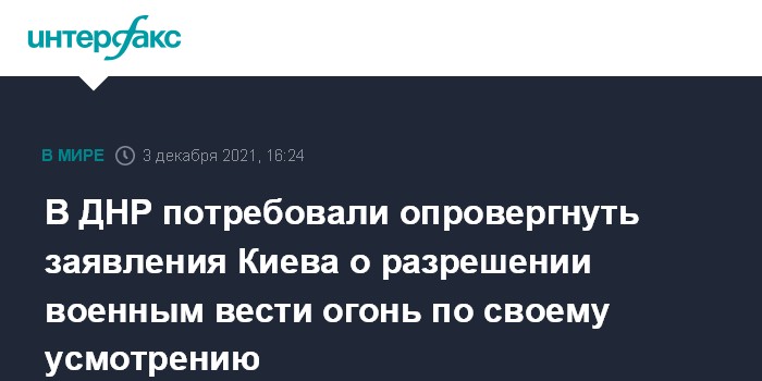 Москва. 3 декабря. INTERFAX.RU - Донецк потребовал от Киева опровергнуть заявления командования ВСУ о разрешении военнослужащим открывать огонь по своему усмотрению. Об этом заявили в делегации самопровозглашенной Донецкой народной республики на переговорах Трехсторонней контактной группы по урегулированию конфликта на востоке Украины (ТКГ).