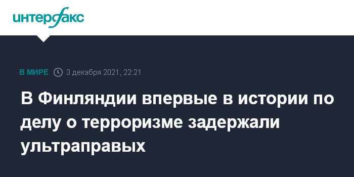 Это первое в истории Финляндии дело, в котором в террористической деятельности подозревают радикально правых, подчеркнули в полиции. Предварительное расследование продолжается, крайний срок для возбуждения уголовного дела - 31 марта 2022 года.