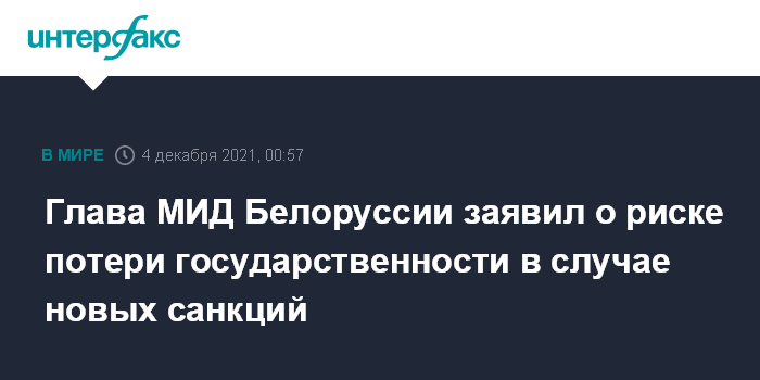 Глава МИД Белоруссии заявил о риске потери государственности в случае новых санкций