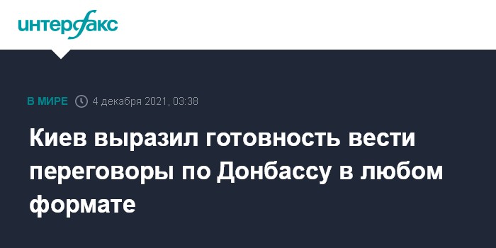 Москва. 4 декабря. INTERFAX.RU - Министр иностранных дел Украины Дмитрий Кулеба заявил о готовности Киева к любым форматам мирных переговоров по урегулированию конфликта в Донбассе.