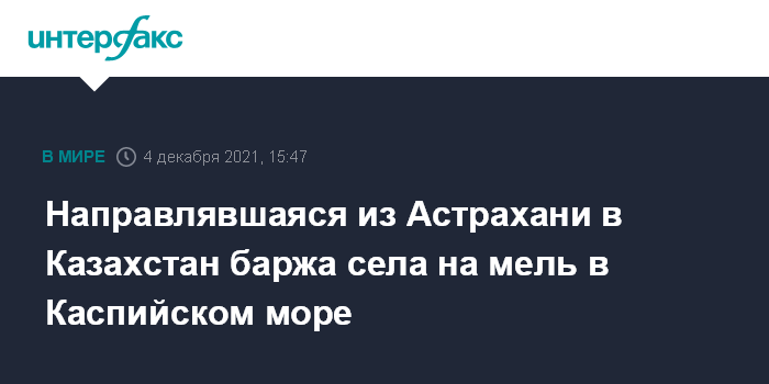 Москва. 4 декабря. INTERFAX.RU - Баржу, следующую из Астрахани в Казахстан, пытаются снять с мели в северо-западной части Каспийского моря.