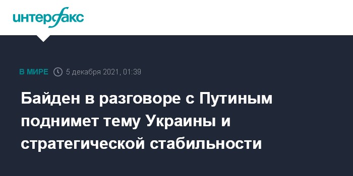 Ранее о том, что разговор Путина с Байденом состоится в ближайший вторник, сообщил пресс-секретарь президента РФ Дмитрий Песков. Байден указывал, что рассчитывает обсудить с Путиным ситуацию вокруг Украины.