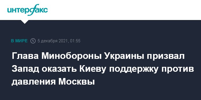 Глава Минобороны Украины призвал Запад оказать Киеву поддержку против давления Москвы