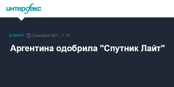 Москва. 6 декабря. INTERFAX.RU - Однокомпонентный "Спутник Лайт" одобрен в Аргентине как в качестве самостоятельной вакцины, так и в качестве бустера к другим препаратам, говорится в сообщении Российского фонда прямых инвестиций (РФПИ).