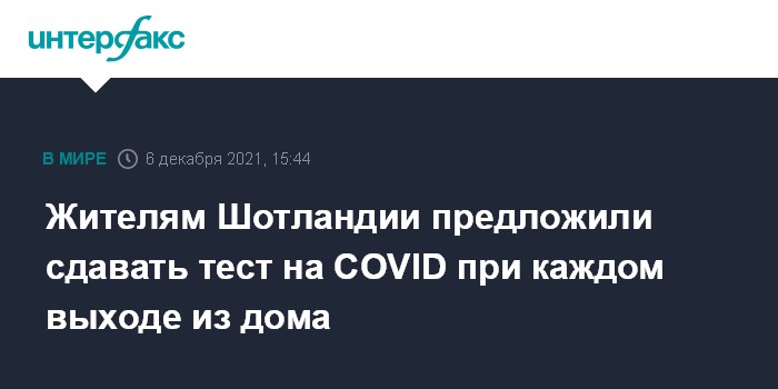 Москва. 6 декабря. INTERFAX.RU - Жителям Шотландии в целях безопасности было бы желательно сдавать экспресс-тест на COVID-19 каждый раз, когда они покидают дом, заявил заместитель первого министра Шотландии Джон Суинни.