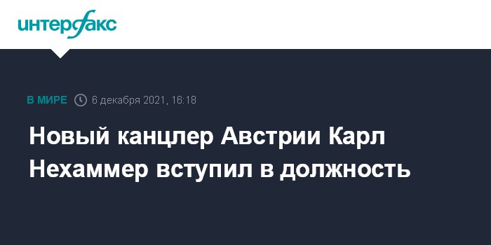 Москва. 6 декабря. INTERFAX.RU - Новый канцлер Австрии, представитель Австрийской народной партии Карл Нехаммер в понедельник вступил в должность, сообщает австрийский телеканал ORF.