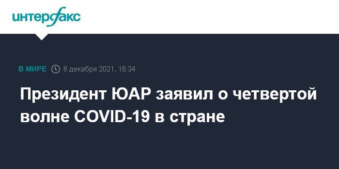"Пока страна входит в четвертую волну COVID-19, мы переживаем такой уровень заражаемости, который еще не наблюдали с начала пандемии", - говорится в обращении южноафриканского президента, опубликованном на его сайте.