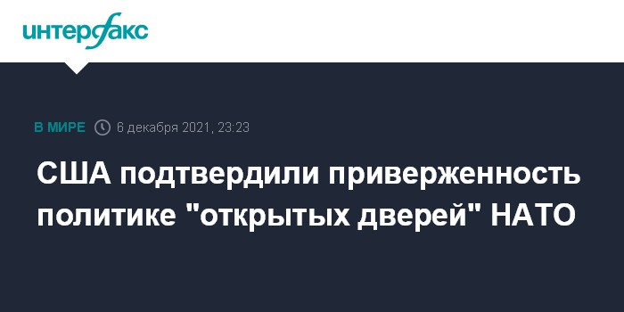 Москва. 6 декабря. INTERFAX.RU - Представитель Госдепартамента США Нед Прайс в понедельник заявил, что Вашингтон считает верной политику "открытых дверей" НАТО, так как страны имеют право самостоятельно определять свою внешнюю политику.
