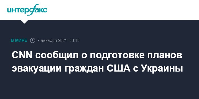 Москва. 7 декабря. INTERFAX.RU - В администрации президента США Джо Байдена готовят варианты для эвакуации американских граждан с Украины на случай начала войны, сообщает CNN со ссылкой на шесть источников.