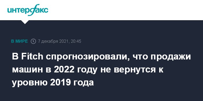 В Fitch спрогнозировали, что продажи машин в 2022 году не вернутся к уровню 2019 года