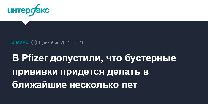 В Pfizer допустили, что бустерные прививки придется делать в ближайшие несколько лет