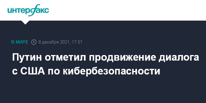 Москва. 8 декабря. INTERFAX.RU - России и США с июньской встречи двух президентов в Женеве удалось значительно продвинуться в диалоге о вопросах кибербезопасности, Владимир Путин и Джо Байден на переговорах 7 декабря подробно обсудили этот диалог, рассказал российский лидер.