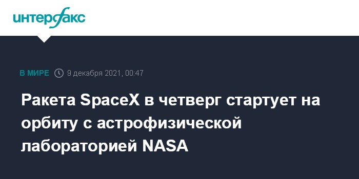 Ракета SpaceX в четверг стартует на орбиту с астрофизической лабораторией NASA