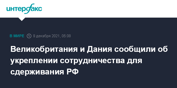 Москва. 9 декабря. INTERFAX.RU - Соединенное Королевство и Дания договорились об укреплении сотрудничества на случай необходимости сдерживания России.