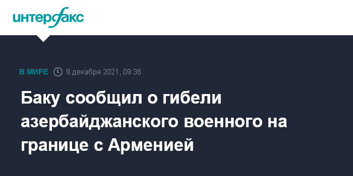Минобороны Азербайджана сообщило, что один военный погиб ночью 8 декабря из-за "очередной провокации, совершенной ВС Армении на азербайджано-армянской границе в направлении Кельбаджарского района". Азербайджанские подразделения в результате подавили противника, добавили в ведомстве.