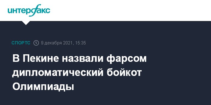 Москва. 9 декабря. INTERFAX.RU - Дипломатический бойкот, устроенный рядом стран зимним Олимпийским играм в Пекине, является бесполезным мероприятием, заявил в четверг представитель МИД КНР Ван Вэньбинь.