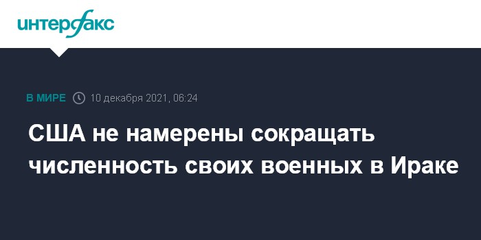 Москва. 10 декабря. INTERFAX.RU - Глава Центрального командования ВС США генерал Фрэнк Маккензи заявил, что обозримом будущем США сохранят численность своих военных в Ираке на нынешнем уровне - 2,5 тыс. человек.