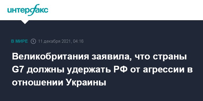 Великобритания заявила, что страны G7 должны удержать РФ от агрессии в отношении Украины
