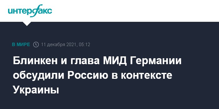 Москва. 11 декабря. INTERFAX.RU - Госсекретарь США Энтони Блинкен и глава МИД Германии Анналена Бербок на встрече в британском Ливерпуле обсудили вопросы, связанные с "агрессией" России против Украины, сообщил представитель американского госдепартамента Нед Прайс.
