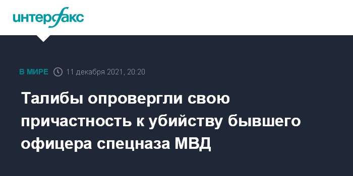 Москва. 11 декабря. INTERFAX.RU - Захватившее в августе власть в Афганистане движение "Талибан" (запрещенная в РФ террористическая организация) опровергло причастность к убийству бывшего офицера спецназа МВД в Кабуле.