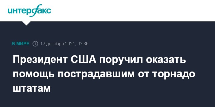 Москва. 12 декабря. INTERFAX.RU - Президент США Джо Байден заявил, что правительство сделает все возможное, чтобы помочь центральным районам страны, разрушенным торнадо, пишет BBC News.