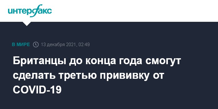 Москва. 13 декабря. INTERFAX.RU - Премьер-министр Великобритании Борис Джонсон в обращении к нации объявил, что у всех жителей Англии в возрасте 18 лет и старше будет возможность получить бустерную дозу вакцины против COVID-19 до конца года для борьбы с распространением варианта коронавируса "омикрон".
