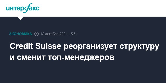Москва. 13 декабря. INTERFAX.RU - Credit Suisse Group AG 13 декабря объявил о структурной реорганизации и назначил новых руководителей основных подразделений.