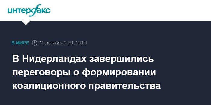 Москва. 13 декабря. INTERFAX.RU - В Нидерландах завершились переговоры о формировании нового коалиционного правительства, в среду ожидается представление программы кабинета в парламенте, сообщает в понедельник издание Dutch News.