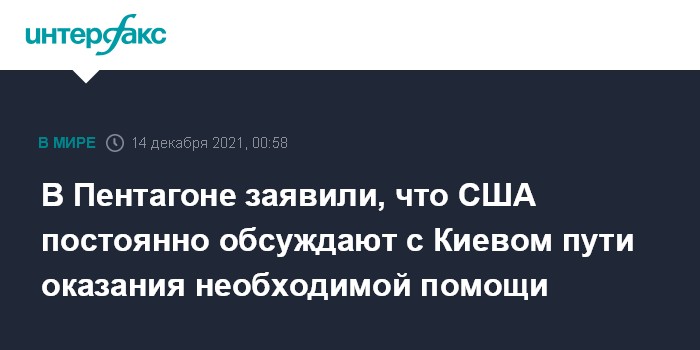 Москва. 14 декабря. INTERFAX.RU - Вашингтон постоянно обсуждает с Киевом пути оказания помощи, сообщил на брифинге в понедельник представитель Пентагона Джон Кирби.