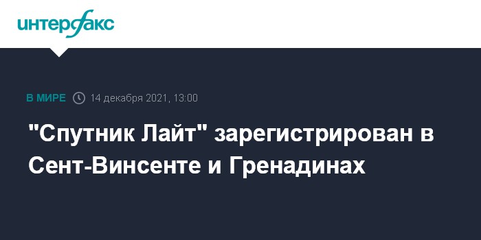 "Однокомпонентный "Спутник Лайт", эффективная отдельная вакцина против COVID-19 и мощный бустер, одобрена на Сент-Винсенте и Гренадинах", - говорится в твиттере производителя вакцины.