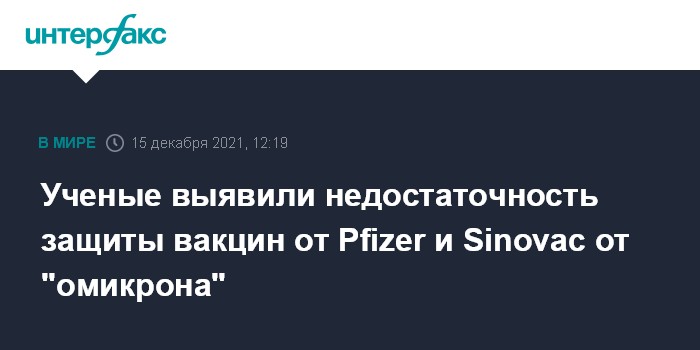Москва. 15 декабря. INTERFAX.RU - Вакцины от компаний Pfizer и Sinovac не приводят к выработке достаточного количества антител, чтобы защитить от нового штамма коронавируса COVID-19 "омикрон". Об этом пишет издание South China Morning Post со ссылкой на исследование Гонконгского университета.
