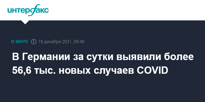 В Германии за сутки выявили более 56,6 тыс. новых случаев COVID
