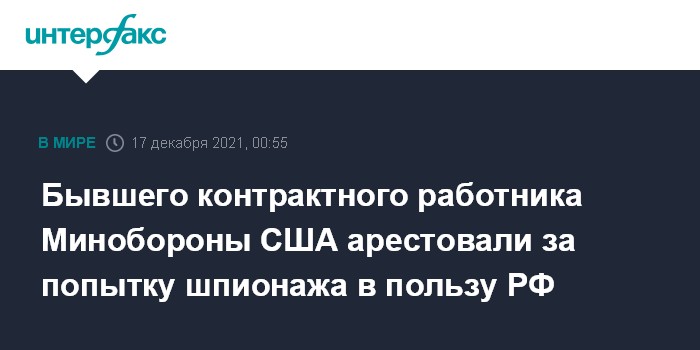 Бывшего контрактного работника Минобороны США арестовали за попытку шпионажа в пользу РФ